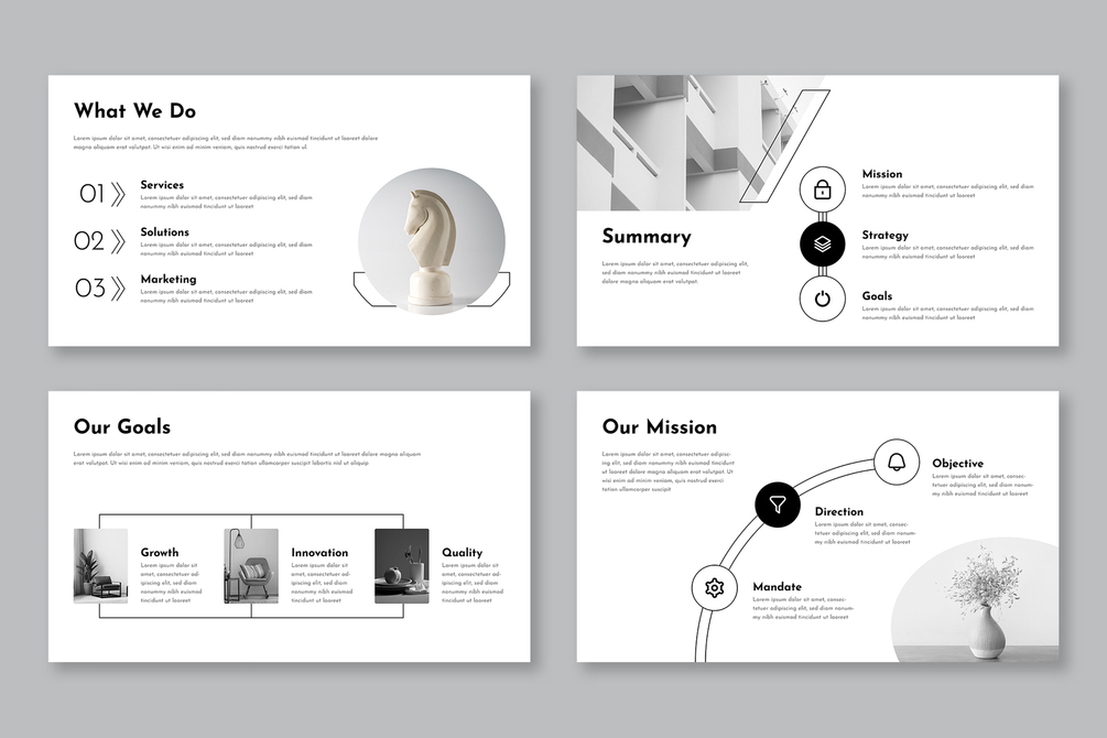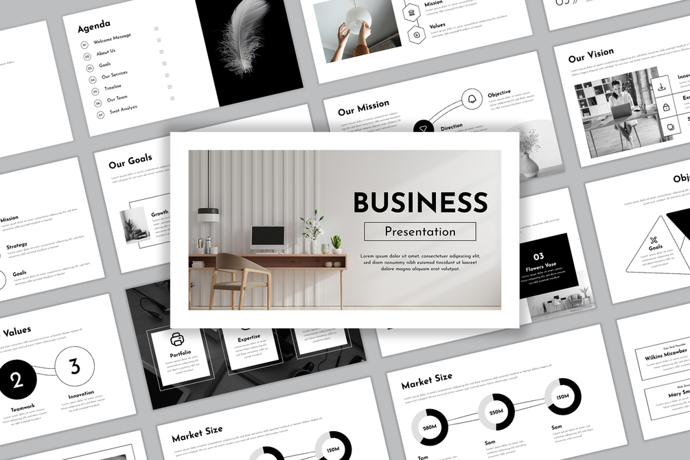 This template is perfect for anyone in need of a minimal, yet artistic approach to their business presentation, whether you’re pitching ideas, sharing updates, or presenting new opportunities. Create an impression that lasts and communicates your message clearly and beautifully.