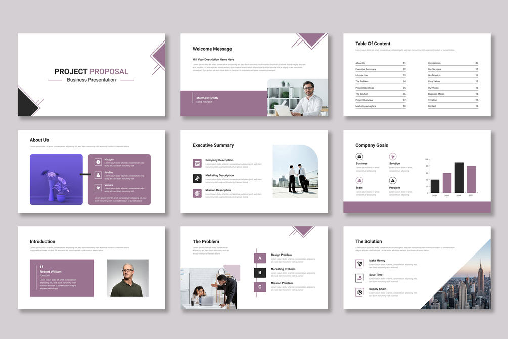 Compatible with both Microsoft PowerPoint and Adobe Illustrator, this template offers seamless customization with features like drag-and-drop photo replacement, master slide layout, and theme color options for one-click changes, making it incredibly user-friendly. Whether you’re a startup, corporate professional, or freelancer, this versatile template is designed to elevate your presentations, engage your audience, and leave a lasting impression. Take your project proposal to the next level with this elegant and functional design, tailored for success.