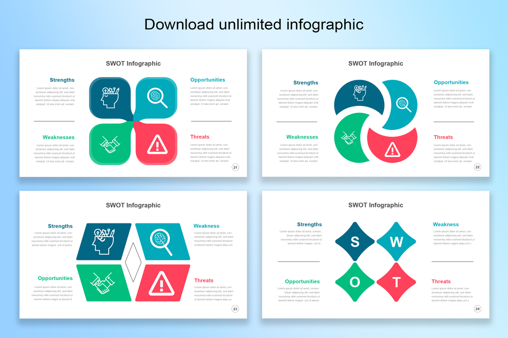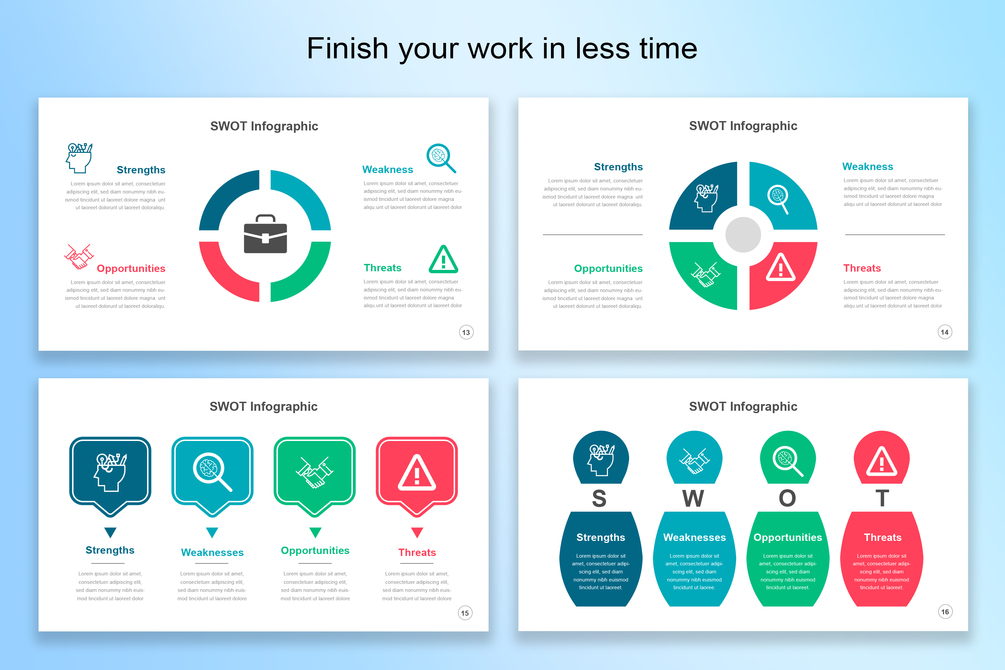 30 Slide SWOT Analysis designs included.