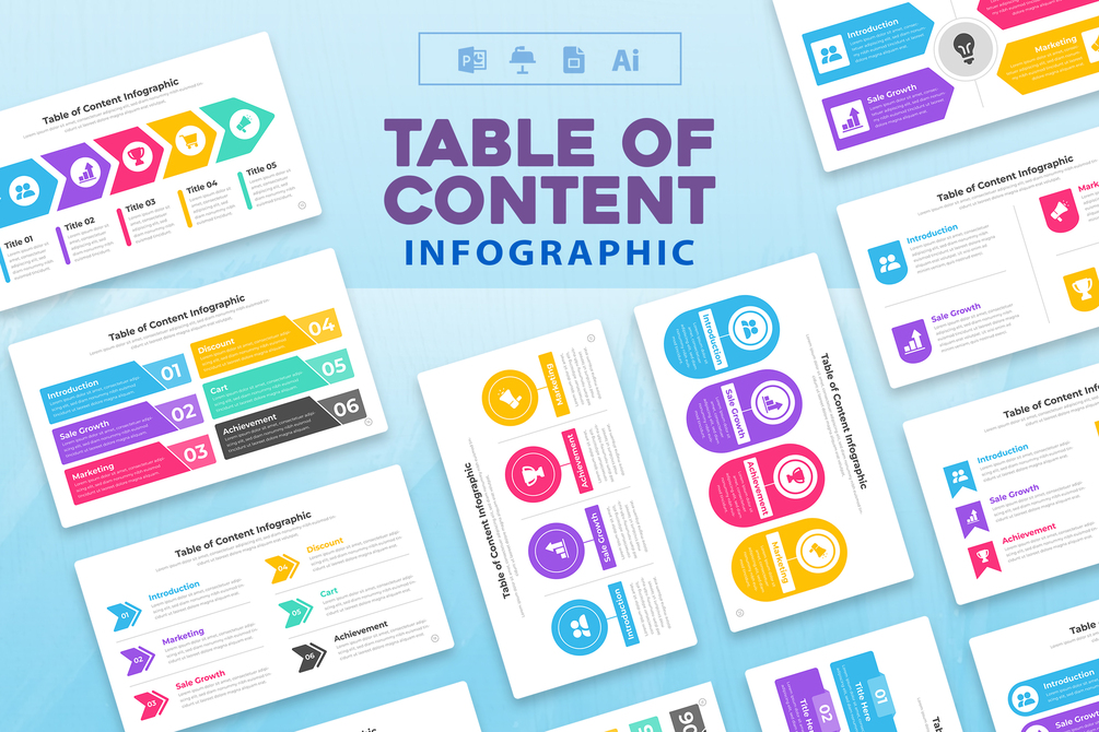 Creating an engaging Table of Contents (TOC) is crucial for structuring presentations effectively. Whether you’re preparing a business report, academic paper, or creative project, a well-designed TOC infographic can enhance clarity and make your content more accessible. This comprehensive guide explores various Table of Content Infographics Templates available across different platforms, including Microsoft PowerPoint, Keynote, Google Slides, Canva, and Adobe Illustrator. We’ll delve into the features, benefits, and applications of each template type, helping you select the ideal format for your needs.
